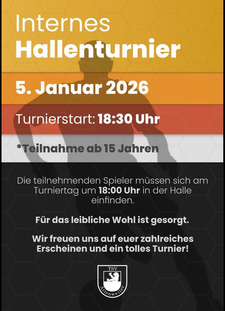 Am Samstag den 17.01.2026 finden in der Turn- und Festhalle Attenweiler unsere Fußball-Jugend-Hallenturniere statt.